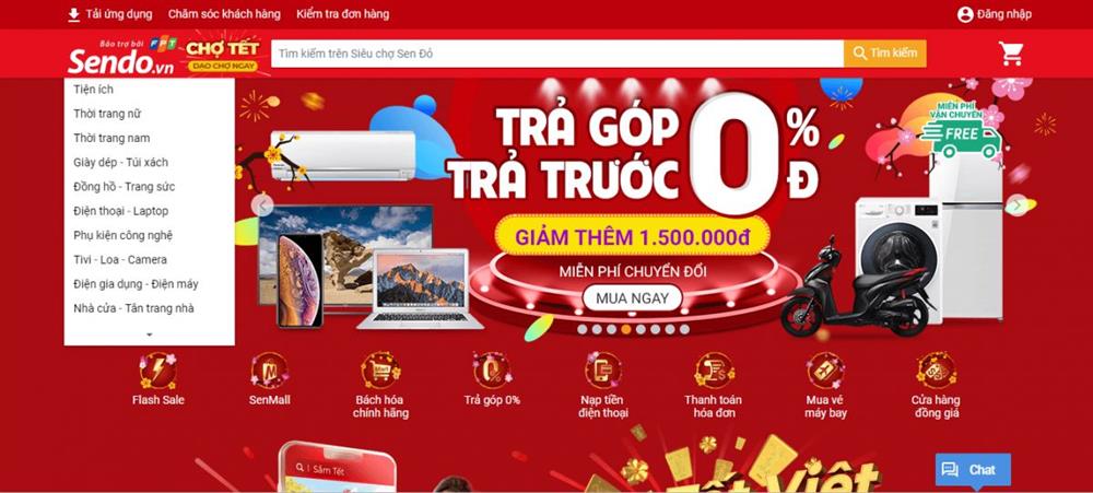 Trang chủ chính của sàn giao dịch thương mại điện tử Sen Đỏ.