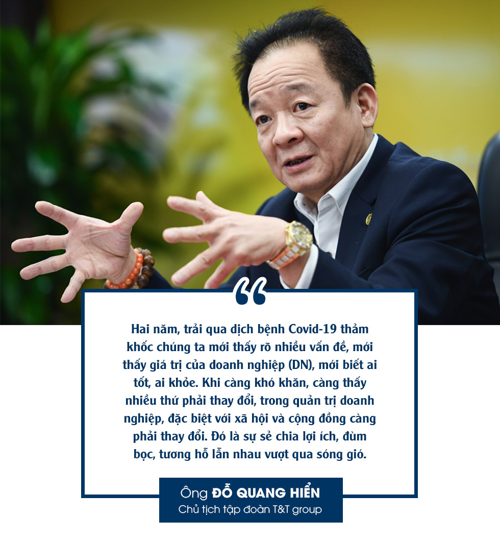 Ông Đỗ Quang Hiển: Hai năm, trải qua dịch bệnh Covid-19 thảm khốc chúng ta mới thấy rõ nhiều vấn đề, mới thấy giá trị của doanh nghiệp (DN), mới biết ai tốt, ai khỏe. Khi càng khó khăn, càng thấy nhiều thứ phải thay đổi, trong quản trị DN, đặc biệt với xã hội và cộng đồng càng phải thay đổi. Đó là sự sẻ chia lợi ích, đùm bọc, tương hỗ lẫn nhau vượt qua sóng gió.