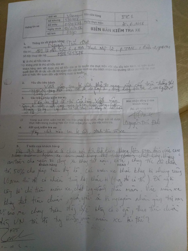 Như đã thông tin, ông Nguyễn Tiến Đạt (ngụ tại quận 2, TP.HCM) mua một chiếc moto hiệu Vision của hãng Honda và chỉ mới sử dụng được 2 tháng, mâm bánh sau đã bị vênh. Ngay khi xảy ra sự cố, ông Đạt đưa xe đến một Head của Honda trên đường Trường Chinh (quận Tân Bình) đề nghị bảo hành, vì ông cho rằng, mâm vênh là do lỗi kỹ thuật của nhà sản xuất.