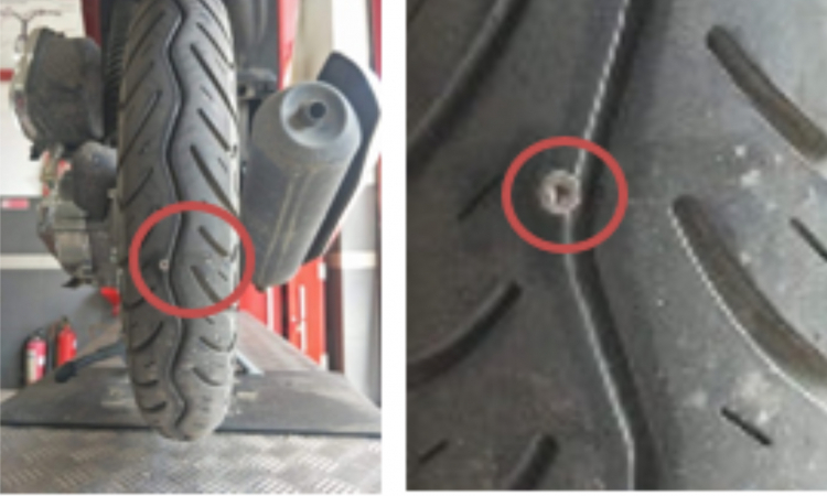 Vết đinh dính trên bánh xe là lý do để Honda Việt Nam khẳng định lỗi không thuộc về thương hiệu này (ảnh do Honda cung cấp)