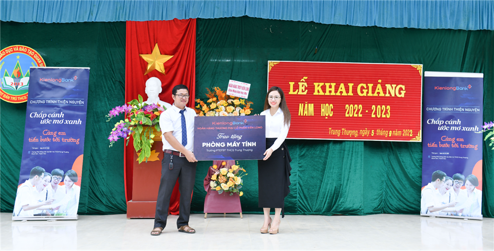 Hòa chung trong không khí tưng bừng chào đón năm học mới của trường, ngày 05/9/2022, Ngân hàng TMCP Kiên Long (KienlongBank) cùng với Ban Lãnh đạo trường PTDTBT THCS Trung Thượng (huyện Quan Sơn, tỉnh Thanh Hoá) tổ chức chương trình “Chắp cánh ước mơ xanh, cùng em tiến bước tới trường”. Là một trường vùng núi thuộc mảnh đất xứ Thanh giàu truyền thống hiếu học, thầy và trò trường Trung Thượng luôn nỗ lực vượt khó và giành được những thành tích xuất sắc trong học tập cũng như công tác giảng dạy.