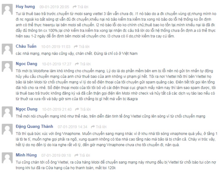 "Tôi không nợ cước hay đang xảy ra tranh chấp với nhà mạng cũ song vẫn bị từ chối. Khi gọi lên tổng đài chăm sóc khách hàng để hỏi về việc chuyển mạng, nhân viên hỏi tôi rất nhiều về chất lượng dịch vụ, có điểm nào hài lòng theo từng tiêu chí cụ thể như chất lượng sóng, tốc độ dữ liệu di động, chính sách khuyến mãi...", chị Thanh nói và cho rằng nhà mạng Mobifone đang tìm cách níu kéo khách hàng chuyển mạng và gây khó dễ.