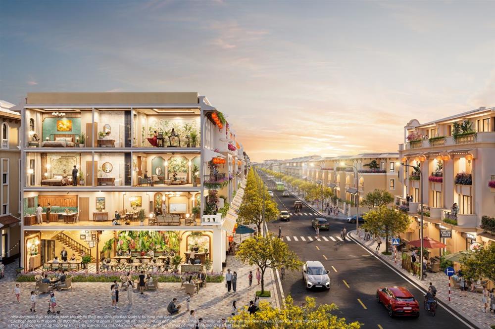 Thiết kế “2 trong 1” tiếp tục gia tăng hiệu quả khai thác. Mỗi căn sở hữu khoảng 300m² sàn, mặt tiền đại lộ rộng và vỉa hè lớn giúp tối đa hóa nhận diện thương mại. Tầng dưới phục vụ kinh doanh, trong khi các tầng trên linh hoạt cho nhu cầu ở hoặc lưu trú.