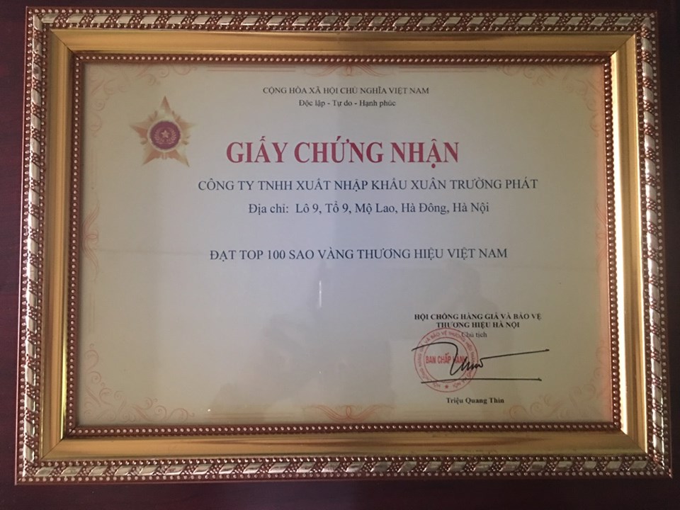 Công ty TNHH Xuất Nhập Khẩu Xuân Trường Phát đạt top 100 sao vàng thương hiệu Việt Nam