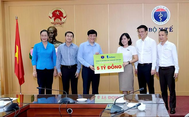 GS-TS Nguyễn Thanh Long - Bộ trưởng Bộ Y tế tiếp nhận ủng hộ lần 2 (ngày 7.8.2020) do bà Nguyễn Thị Hà - Tổng giám đốc Công ty VitaDairy trao tặng trong chiến dịch “Bảo vệ bác sĩ 24h