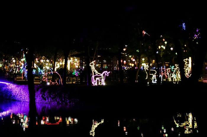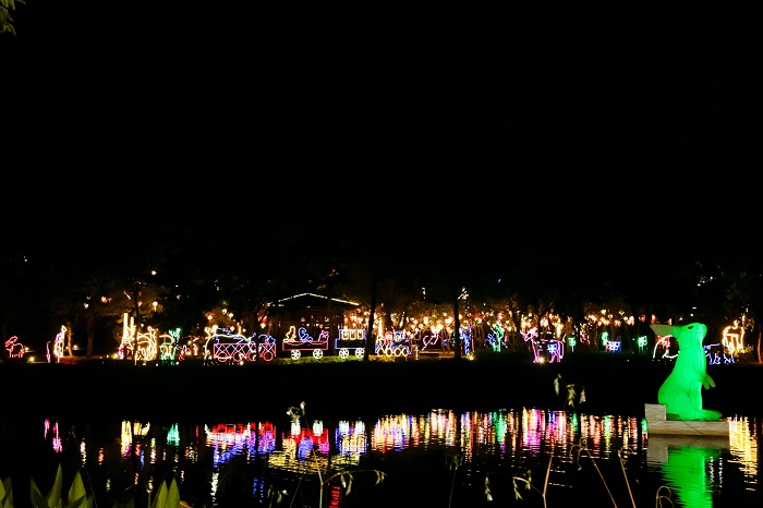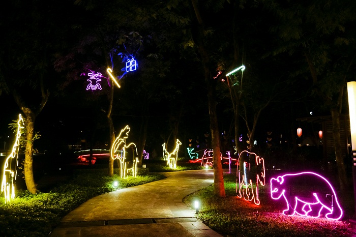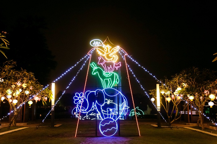 Đặc biệt hơn, các em nhỏ sẽ có cơ hội được ngắm nhìn những con vật từ đường dây đèn tạo hình trong khu vườn thú ánh sáng Zoo Lights, vườn thú ánh sáng cũng là lần đầu tiên xuất hiện ở khu vực Hà Nội. Hình ảnh đèn điện tạo ra những hình chú voi, chú gấu, tê giác, cá heo, hưu cao cổ... với nhiều màu sắc huyền ảo hòa cùng không gian cỏ cây, hồ nước nơi đây tất cả đạo tạo lên một không gian, một bữa tiệc ánh sáng thật độc đáo.
