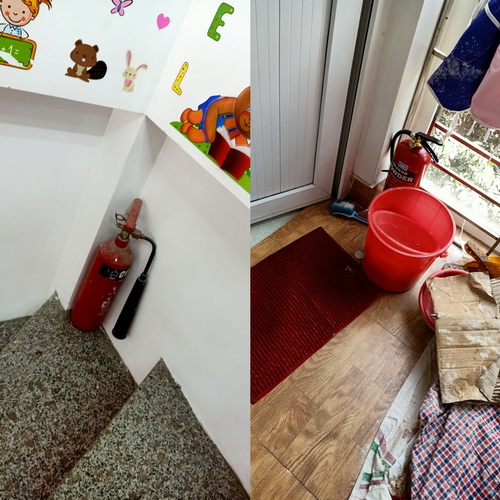 Cả 3 tầng nhà sách mới có 3 bình chữa cháy mini và không có nội quy PCCC.