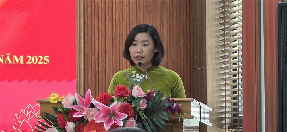 Đồng chí Trương Thị Ngọc – Bí thư Đảng bộ Doanh nghiệp phường Tây Hồ báo cáo tổng kết công tác năm 2025 và nhiệm vụ phương hướng năm 2026