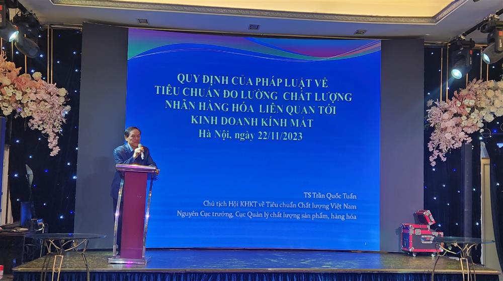 Theo đó, TS. Trần Quốc Tuấn – Chủ tịch Hội KHKT về Tiêu chuẩn chất lượng Việt Nam, Nguyên Cục Trưởng – Cục Quản lý chất lượng sản phẩm, hàng hóa đã trình bày một số quy định của Pháp luật về tiêu chuẩn đo lường chất lượng nhãn hàng hoá liên quan tới kinh doanh kính mắt.
