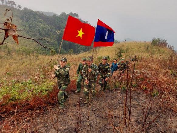 Cán bộ, chiến sĩ hai đơn vị tuần tra biên giới. Ảnh: Anh Dũng