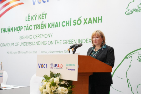 Cụ thể, Cơ quan Phát triển quốc tế Hoa Kỳ (USAID), Phòng Thương mại và Công nghiệp Việt Nam (VCCI) và Công ty TNHH Nước giải khát Suntory Pepsico Việt Nam (SPVB) ký biên bản ghi nhớ thực hiện hợp tác triển khai Chỉ số Xanh nhằm giúp các doanh nghiệp xác định địa bàn đầu tư có sự quan tâm và tạo điều kiện cho các hoạt động đầu tư và kinh doanh “xanh” vào ngày 23/11.