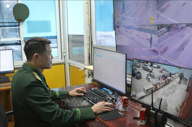 Lực lượng BĐBP tỉnh Lạng Sơn vận hành hệ thống quản lý xuất nhập cảnh tại cửa khẩu quốc tế Hữu Nghị.