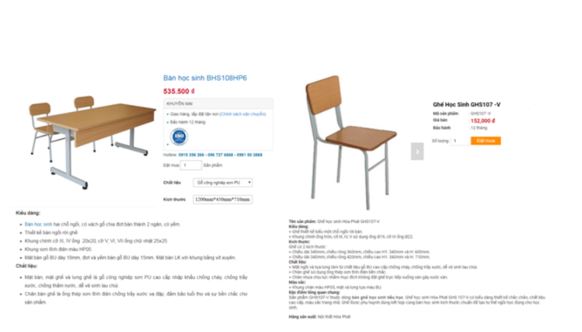 Bàn ghế học sinh Khối THCS (DS-BTH07; DS-GTH07) được rao bán trên thị trường cũng có giá thấp hơn so với giá phê duyệt của Phòng Giáo dục và Đào tạo huyện Tam Đảo.