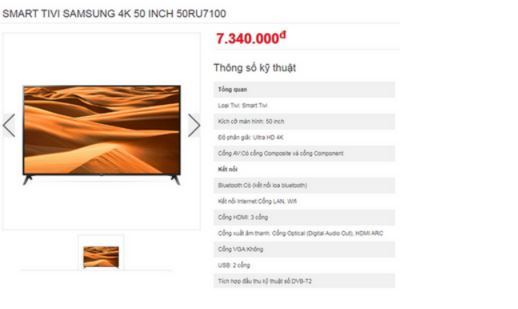 Chưa hết, sản phẩm Tivi 50 inch có giá được Phòng Giáo dục và Đào tạo huyện Tam Đảo duyệt mua là 11.988.000/chiếc. Thế nhưng PV được báo giá chỉ khoảng hơn 7,4 triệu đồng/chiếc.