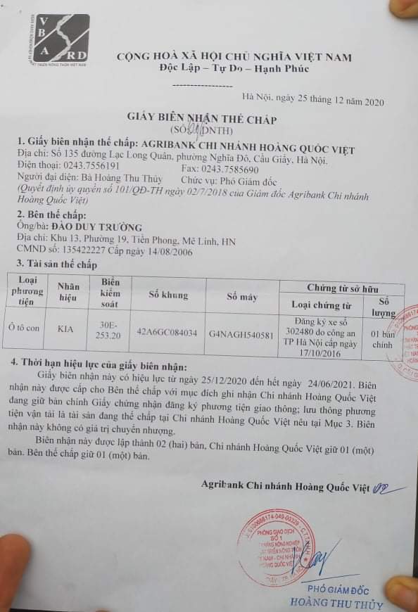 Nhưng khi đăng kiểm, chiếc xe mang BKS:30E-253.20 lại được phù phép bởi giấy biên nhận của Ngân hàng Agribank