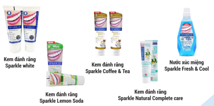 Hiện nay, Vietland đã và đang phân phối 5 sản phẩm kem đánh răng và nước xúc miệng nhãn hiệu Sparkle:
