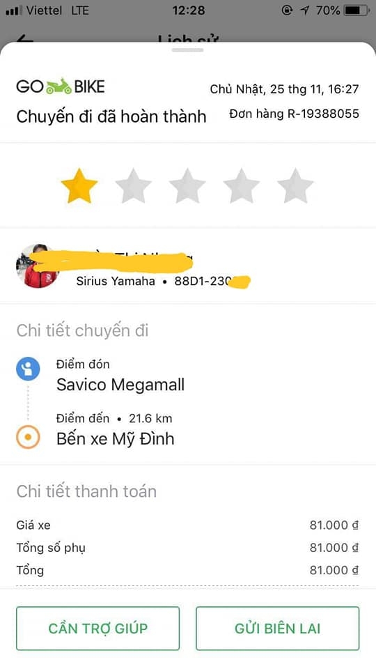 Cụ thể, theo chị D., ngày 25/11, chị đặt 2 chuyến xe máy Go-viet di chuyển từ Long Biên đến Mỹ Đình để bắt xe cho 3 người trong gia đình về quê gồm chị D., mẹ đẻ và đứa con nhỏ. Vì hai xe không đến cùng một lúc nên chị để mẹ lên xe đến Mỹ Đình trước, mình và con nhỏ đợi xe theo sau.