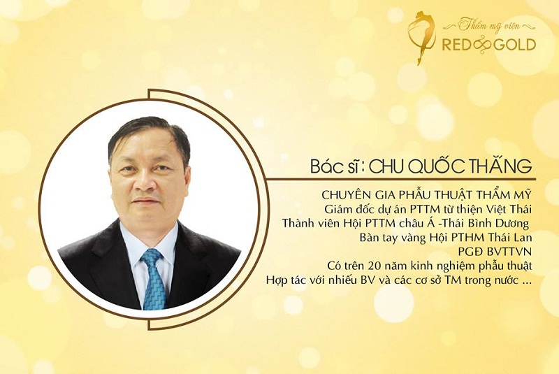 Bên cạnh đó, thẩm mỹ viện Red & Gold còn quảng cáo dịch vụ tiêm truyền trắng sẽ do Bác sĩ Chu Quốc Thắng thực hiện. Đây là chuyên gia, bác sĩ hàng đầu tại Việt Nam về lĩnh vực phẫu thuật chỉnh hình, có hơn 10 năm kinh nghiệm tu nghiệp tại Pháp, Ba Lan va là nguyên Phó Giám đốc Bệnh viện Thể dục thể thao Việt Nam.