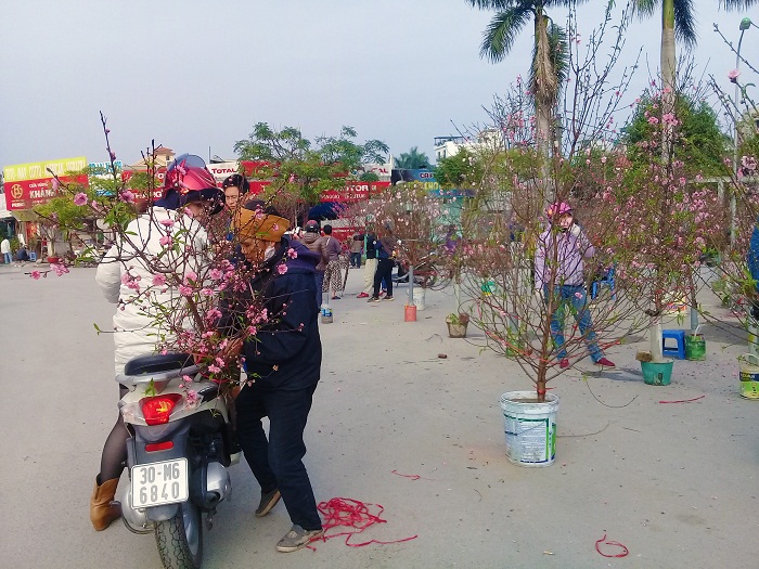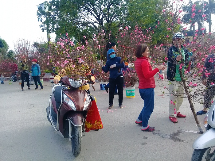 Các tiểu thương bán đào nơi đây cho biết, đã bày bán đào chậu và đào cành từ hơn một tháng nay nhưng những ngày gần đây, số lượng đào cành bán ra để phục vụ Tết ông Công ông Táo cho các gia đình là rất lớn. Có những gia đình mua đến 2 – 3 cành trong một lúc, vừa để trưng bàn thờ tổ tiên cũng như thờ ông Thần Tài.