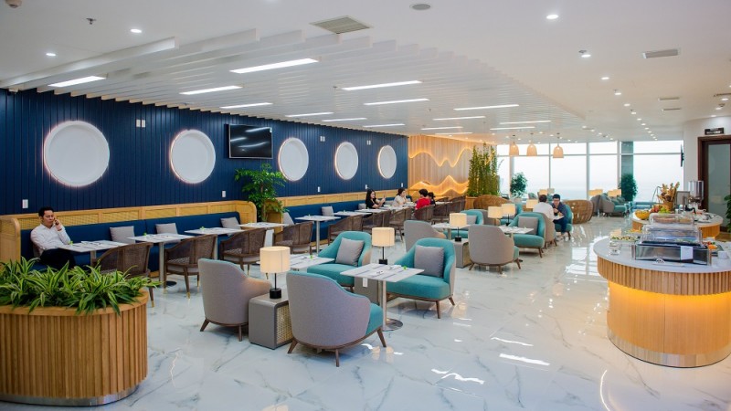 Với tổng diện tích tới 400m2 cùng nhiều tiện nghi, Phòng chờ được phân chia thành các phân khu chức năng nhiều tiện ích như: khu làm việc, thư giãn, ẩm thực, giải trí, quầy bar,... đáp ứng nhu cầu đa dạng của hành khách, công suất phục vụ tối đa lên đến 100 người.