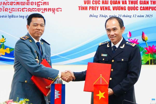 Được sự chấp thuận của Cục Hải quan và Ủy ban nhân dân tỉnh Đồng Tháp, sáng ngày 23/12/2025, Chi cục Hải quan khu vực XX long trọng tổ chức Hội nghị hợp tác trong lĩnh vực hải quan giữa Chi cục Hải quan khu vực XX (Nước Cộng hòa xã hội chủ nghĩa Việt Nam) và Cục Hải quan và Thuế gián thu tỉnh Prey Veng (Vương quốc Campuchia).