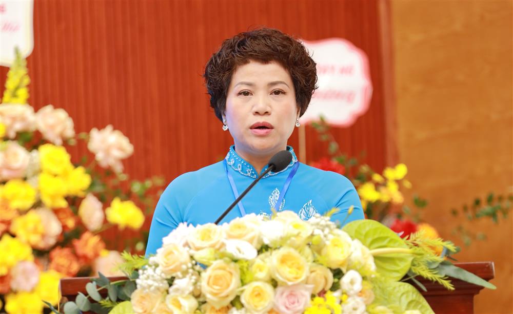 Chủ tịch LĐLĐ quận Tây Hồ khóa V Đỗ Thị Hồng Lê phát biểu tại Đại hội