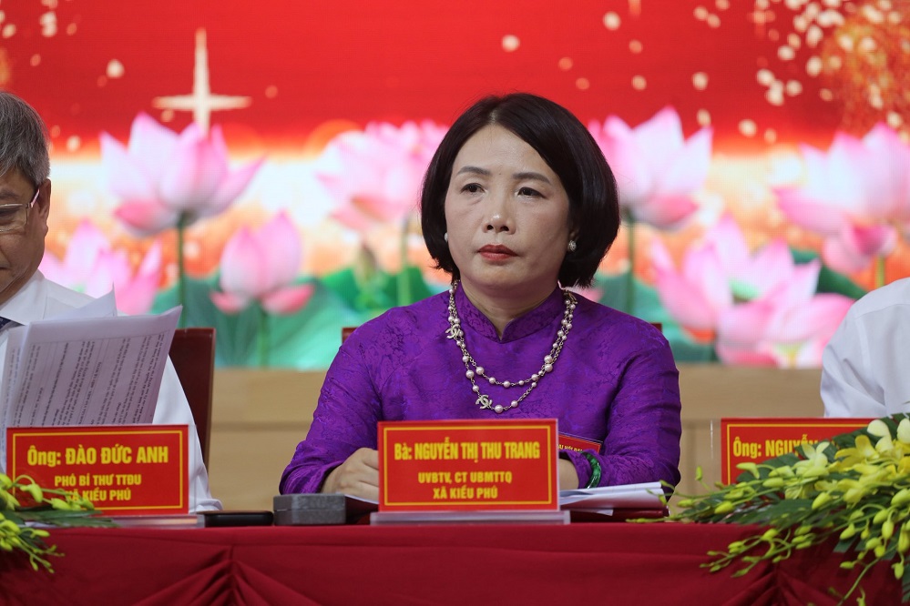 Đại hội Đại biểu Ủy ban Mặt trận Tổ quốc Việt Nam xã Kiều Phú, Hà Nội, lần thứ I, nhiệm kỳ 2025-2030 đã diễn ra thành công tốt đẹp. Đại hội nhất trí bầu, bà Nguyễn Thị Thu Trang vinh dự nhận được sự tín nhiệm cao, đắc cử chức Chủ tịch Ủy ban Mặt trận Tổ quốc Việt Nam xã.