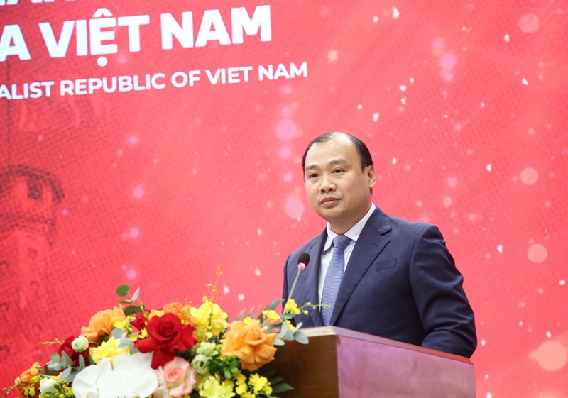 Đ/c Lê Hải Bình, Ủy viên dự khuyết Trung ương Đảng, Thứ trưởng Thường trực Bộ Văn hóa, Thể thao và Du lịch, Giám đốc Trung tâm Báo chí phát biểu