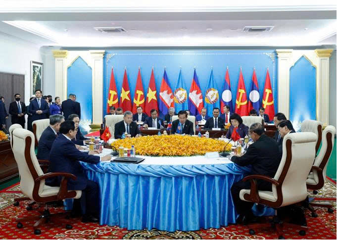 Trong không khí hữu nghị, cuộc gặp cấp cao giữa người đứng đầu ba Đảng diễn ra trong bối cảnh Đảng Cộng sản Việt Nam và Đảng Nhân dân cách mạng Lào vừa tổ chức thành công Đại hội Đảng, đồng thời Đảng Nhân dân Campuchia (CPP) đang tích cực triển khai hiệu quả Cương lĩnh chính trị của Đảng trong việc xây dựng và bảo vệ Tổ quốc giai đoạn 2023-2028, tạo nền tảng quan trọng để ba Đảng tăng cường trao đổi chiến lược, củng cố vững chắc tin cậy chính trị và thống nhất những định hướng lớn cho hợp tác giữa ba Đảng, ba nước trong giai đoạn phát triển mới.