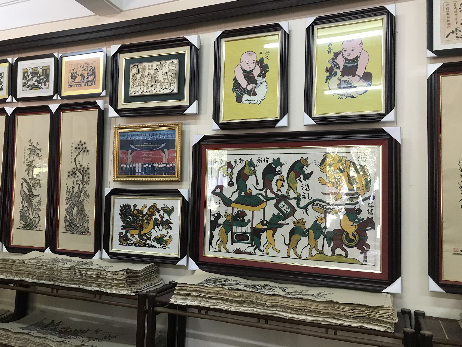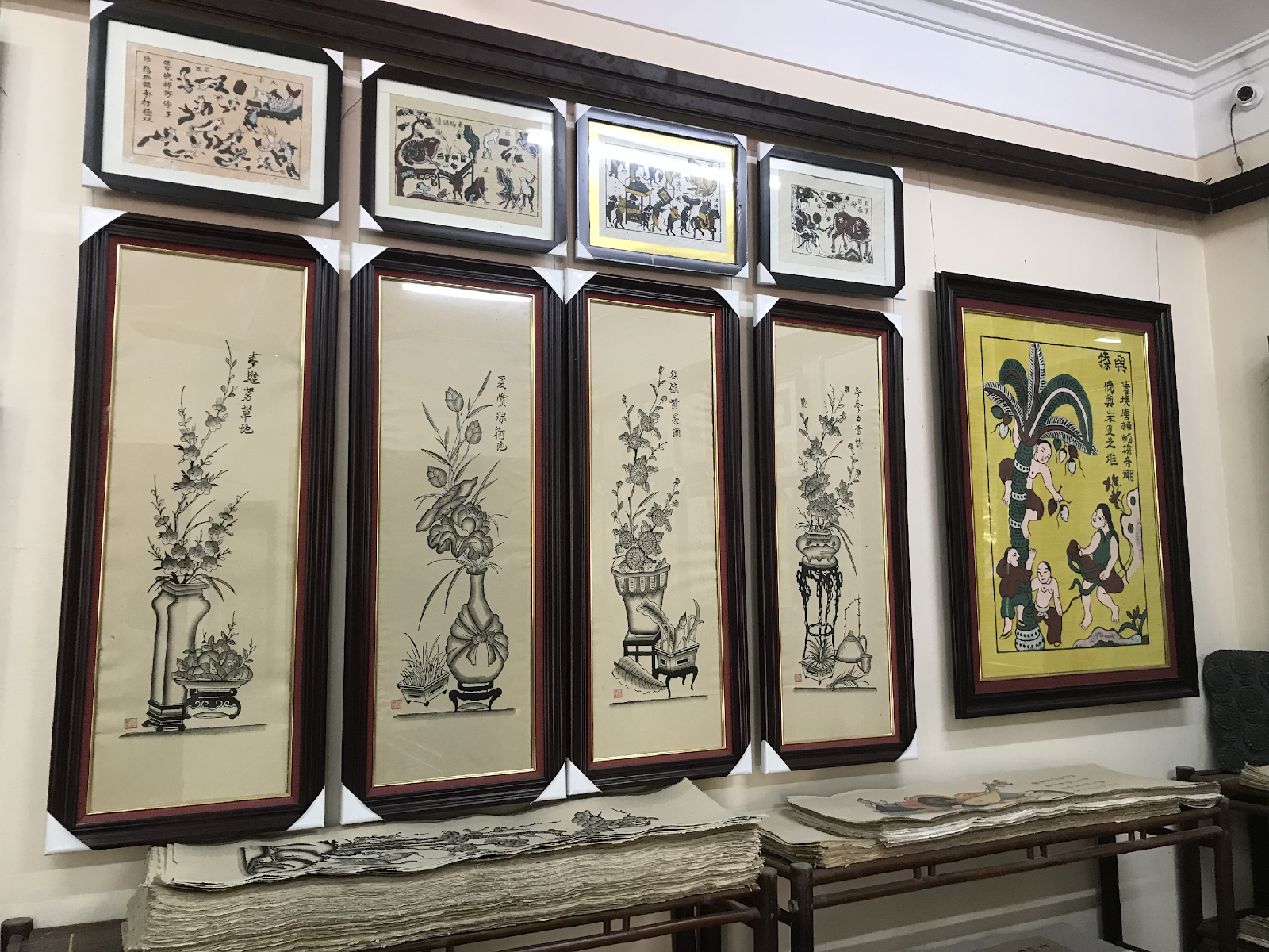 Tranh Đông Hồ được đóng khung treo cẩn thận trên tường