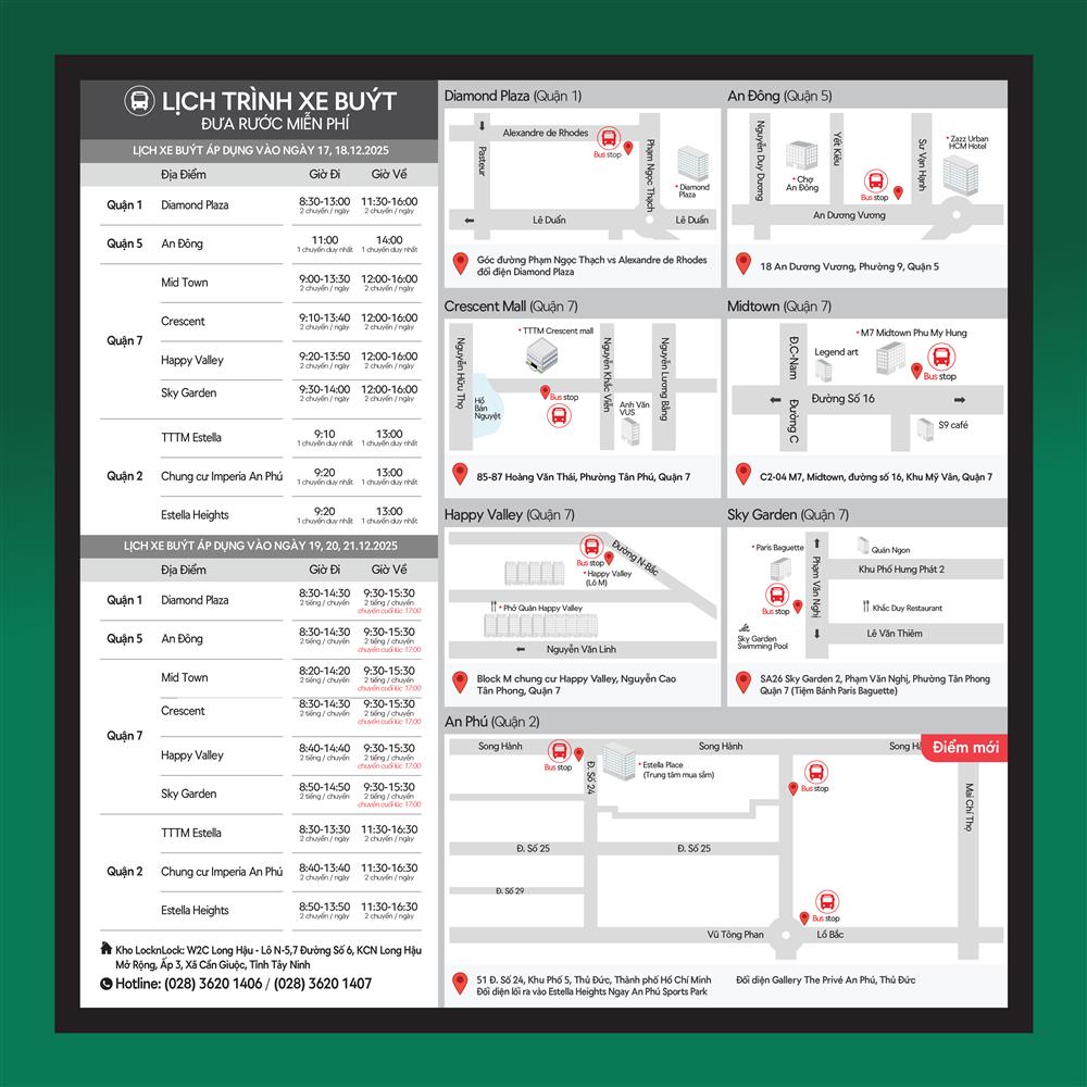 Để hành trình đến sự kiện trở nên thuận tiện, LocknLock bố trí dịch vụ xe bus đưa đón tại các điểm trạm.