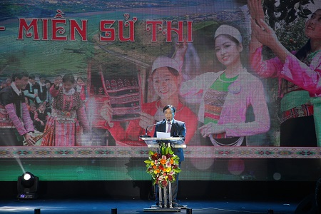 Phát biểu tại lễ khai mạc, Chủ tịch UBND tỉnh Hòa Bình Bùi Văn Khánh cho biết, Hòa Bình là vùng đất có bề dày lịch sử, văn hóa đặc sắc với “Nền Văn hóa Hòa Bình” nổi tiếng thế giới và truyền thống cách mạng vẻ vang. Nơi đây, hội tụ sáu dân tộc anh em cùng sinh sống đoàn kết, gắn bó, thủy chung, sâu nặng tình yêu quê hương đất nước. Dòng chảy lịch sử đã sản sinh, bồi tụ, lưu truyền, hòa quyện bản sắc riêng có của các dân tộc định cư trên mảnh đất này, để cùng nhau làm nên một văn hóa bản địa vừa đậm nét truyền thống, vừa đan quyện với văn hóa giao thoa cùng năm tháng; chắt lọc, lắng đọng chất văn hóa tiên tiến đương đại tạo nên những giá trị văn hóa đậm đà bản sắc và là nguồn tài nguyên nhân văn phong phú và quý giá.