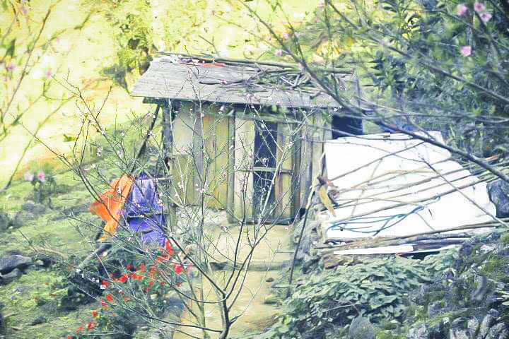 Từ trên thung lũng mận Mu Náu nhìn xuống như một bức tranh phong thủy hữu tình