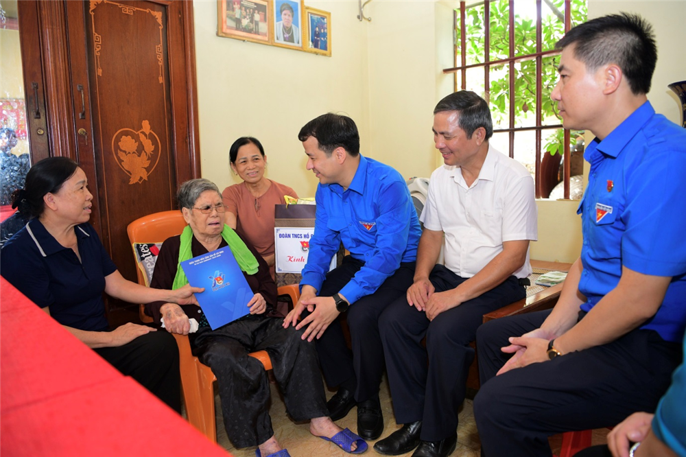 Đồng chí Ngô Văn Cương thăm hỏi tặng quà cho mẹ Việt Nam anh Hùng Vũ Thị Yểng (91 tuổi) tại xã Khánh Hội,huyện Yên Khánh, tỉnh Ninh Bình.
