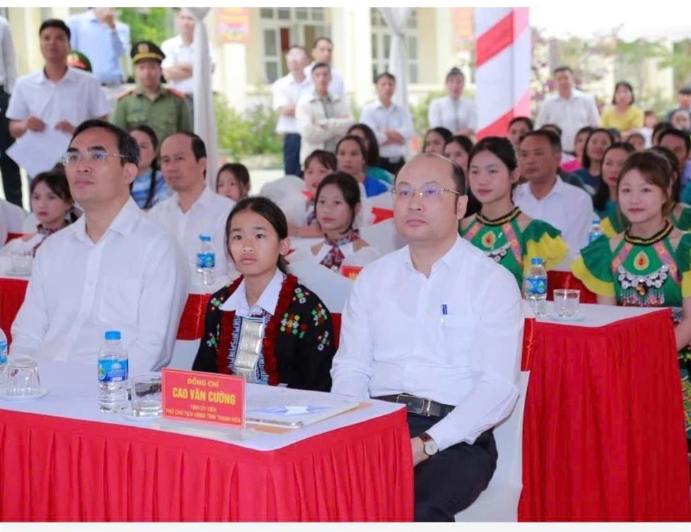 Ông Cao Văn Cường, Tỉnh ủy viên, Phó Chủ tịch UBND tỉnh cùng đại diện lãnh đạo tỉnh Thanh Hóa tham dự lễ khởi công Dự án Trường nội trú liên cấp Tiểu học và THCS Quang Chiểu