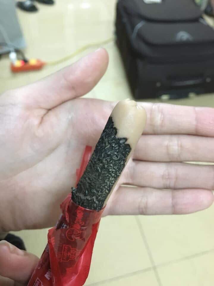Chiếc xúc xích bị phân huỷ bốc mùi.