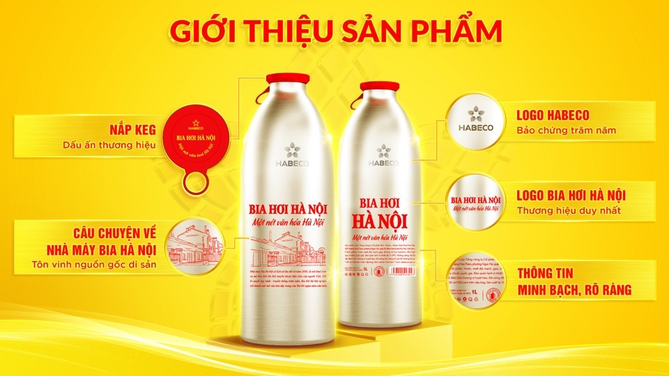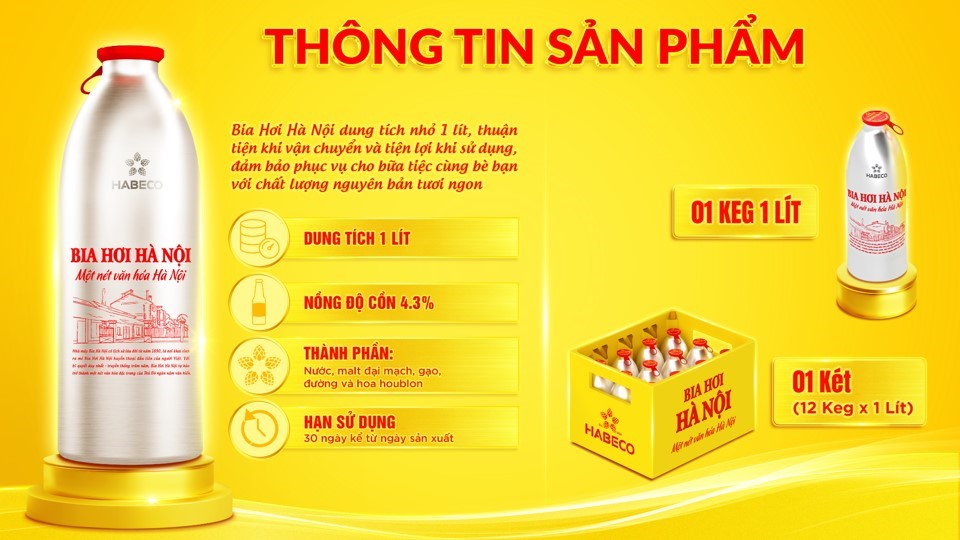 Nhân dịp này, sản phẩm mới KEG 1L được giới thiệu như một lời tri ân và cũng là bước tiến mang tính chiến lược. Với thiết kế hiện đại, điểm nhấn là chiếc nắp đỏ in nổi logo, sản phẩm giữ được dấu ấn thương hiệu và sự nhận diện rõ ràng. Trên thân chai là hình ảnh Nhà máy Bia Hà Nội – nơi khởi nguồn của dòng bia mang hương vị gắn bó với nhiều thế hệ.