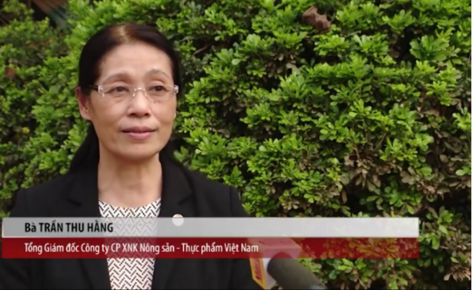 Chị Trần Thị Thu Hằng - Tổng Giám đốc Công ty CP XNK Nông sản thực phẩm Việt Nam là một trong những doanh nhân đi đầu trong chuỗi liên kết giữa người nông dân với doanh nghiệp xuất, nhập khẩu nông sản, chị nhận định, hiện nay, nhiều thị trường thế giới rất thích sản phẩm nông nghiệp của Việt nam bởi vì, nó có nét đặc trưng của từng vùng thổ nhưỡng, khí hậu riêng của Việt Nam, khác hẳn với sản phẩm cùng loại trồng ở nước ngoài, mặc dù sản xuất nông nghiệp ở nước ngoài có điều kiện về quy mô, quy trình sản xuất, mẫu mã, bao bì ...hơn mình, song họ vẫn thích hương vị của sản phẩm nông nghiệp của Việt Nam rất đặc biệt.