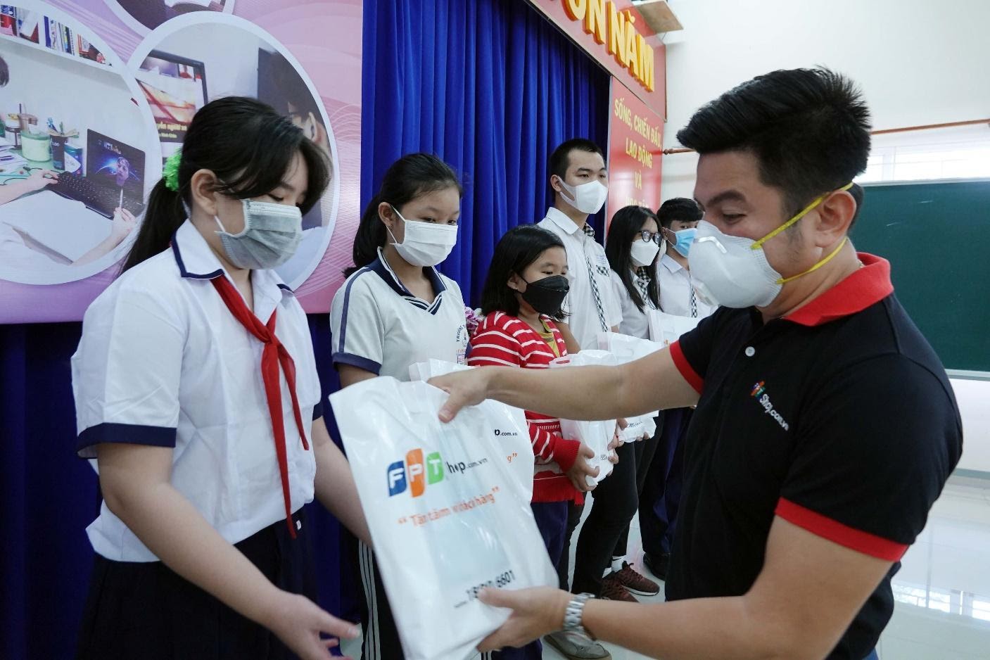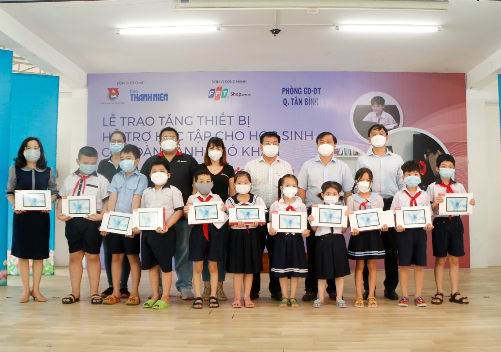 Theo đó, từ ngày 16/11 – 25/11/2021, FPT Shop cùng với Báo Thanh Niên đã trao tặng 100 máy tính bảng cho các em học sinh có hoàn cảnh khó khăn tại các quận: Tân Bình, Bình Tân, huyện Bình Chánh và Cần Giờ. Thông qua chương trình này, FPT Shop mong muốn sẽ tiếp thêm sức mạnh để các em an tâm hơn, dừng đến trường nhưng không dừng học và chung tay vun đắp cho những ước mơ của các em sớm trở thành hiện thực.