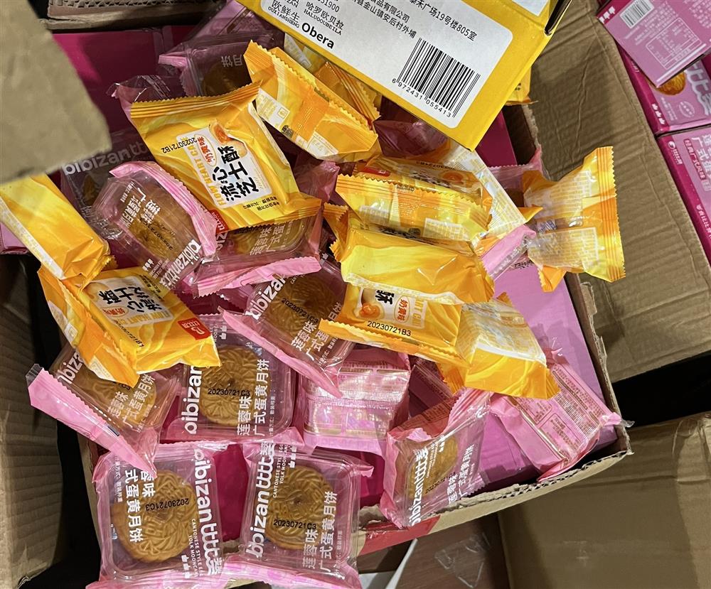 Bánh trung thu do nước ngoài sản xuất nhưng không có hóa đơn chứng từ (Ảnh Cục QLTT Hà Nội)