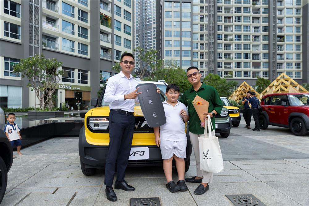 Anh Nguyễn Tuấn Kha (TP.HCM) vui mừng khi là một trong những khách hàng đầu tiên nhận bàn giao xe. “Ngày 12/5, mình biết thông tin VF 3 sẽ mở đặt cọc lúc 6h sáng ngày 13/5. Hôm sau, mình hẹn giờ dậy lúc 5h30, hoàn tất đặt cọc và thanh toán lúc 5h57 phút. Số thứ tự mua xe là 84”, anh Tuấn Kha chia sẻ.