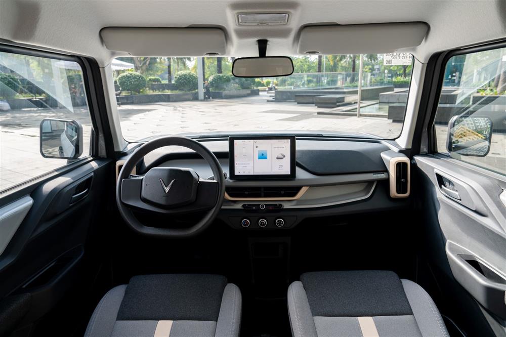 Dù là xe cỡ nhỏ, nhưng VinFast VF 3 vẫn được nhiều khách hàng khen về không gian nội thất rộng rãi đủ cho 4 người lớn. Khoang lái được thiết kế theo phong cách tối giản đặc trưng của VinFast với màn hình giải trí trung tâm 10 inch, cùng cần gạt chuyển số sau vô lăng tương tự những mẫu xe sang.