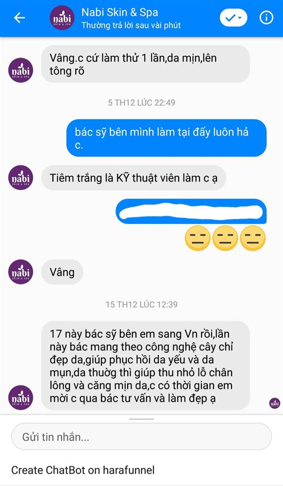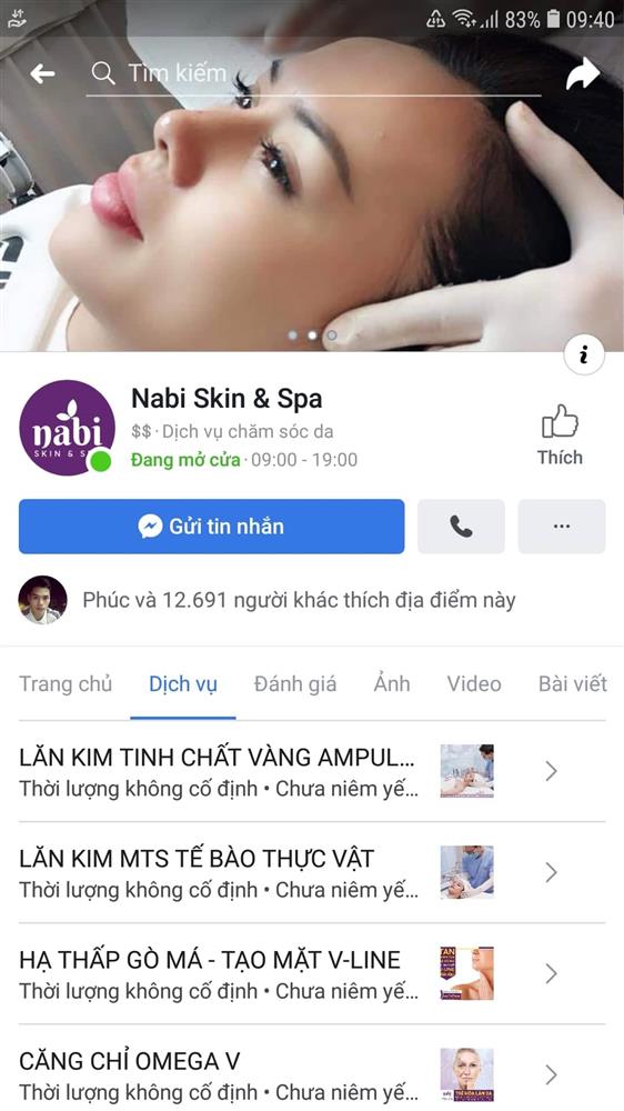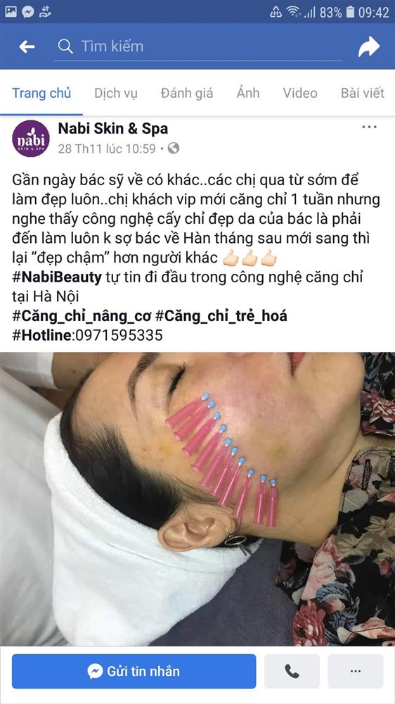 Nabi Skin & Spa quảng cáo nhiều dịch vụ xâm lấn cơ thể.