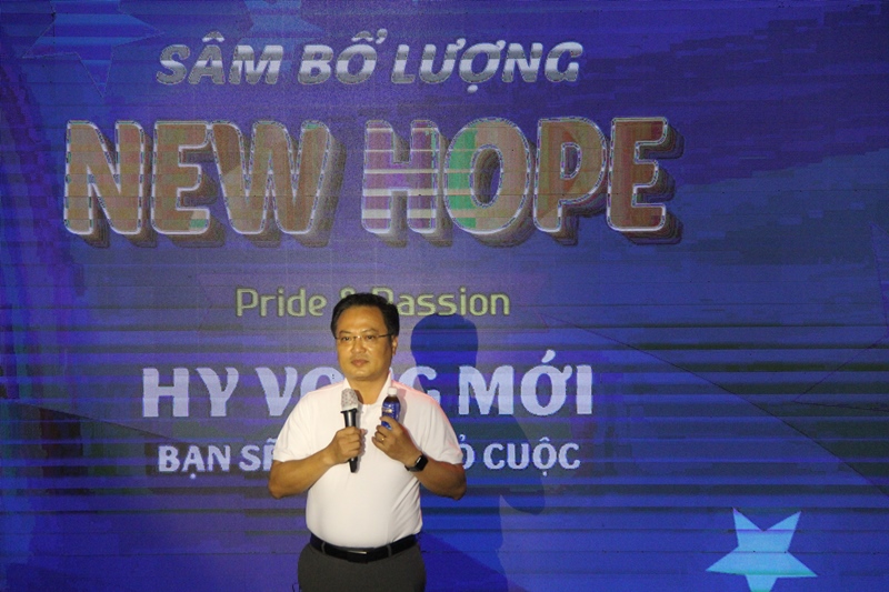 Ông Lê Bá Linh - Chủ tịch HĐQT Công ty Pacific Foods giới thiệu sản phẩm sâm bổ lượng NewHope và nước uống năng lượng SQUID.