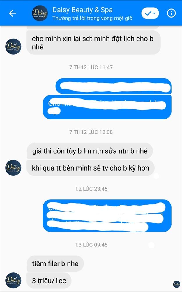 Cơ sở Daisy Beauty & Spa mà chị Tâm đang quản lý sẵn sàng tư vấn về dịch vụ tiêm Filler để làm đầy mũi, cằm với mức giá 3tr/1cc.