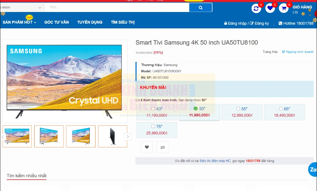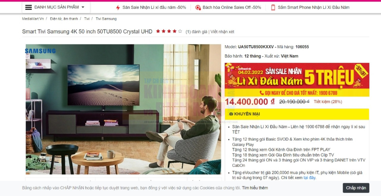 Tivi Samsung UA50TU8500, xuất xứ Việt Nam có giá bán trên thị trường thấp hơn đến vài triệu đồng/cái so với giá mua của Phòng GD&ĐT huyện Thanh Trì