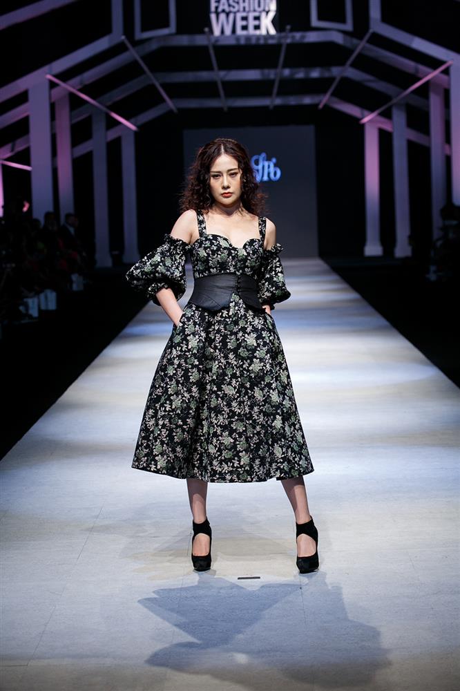 BST cũng sử dụng nhiều họa tiết thêu hoa gấm trên nền vải tối màu sang trọng, thanh lịch hay họa tiết sọc dọc trên nền vải ghi sáng màu – một trong những họa tiết được ưa chuộng nhất trong mùa Thu – Đông năm nay. “Aurora” cũng phô diễn được kĩ thuật cắt may điêu luyện của nhà mốt khi tạo nên những chi tiết đắt giá trên trang phục như dập li, rút nhún cầu kì và xếp nếp thủ công hoàn toàn trên nền các chất liệu nhung, gấm và organza.