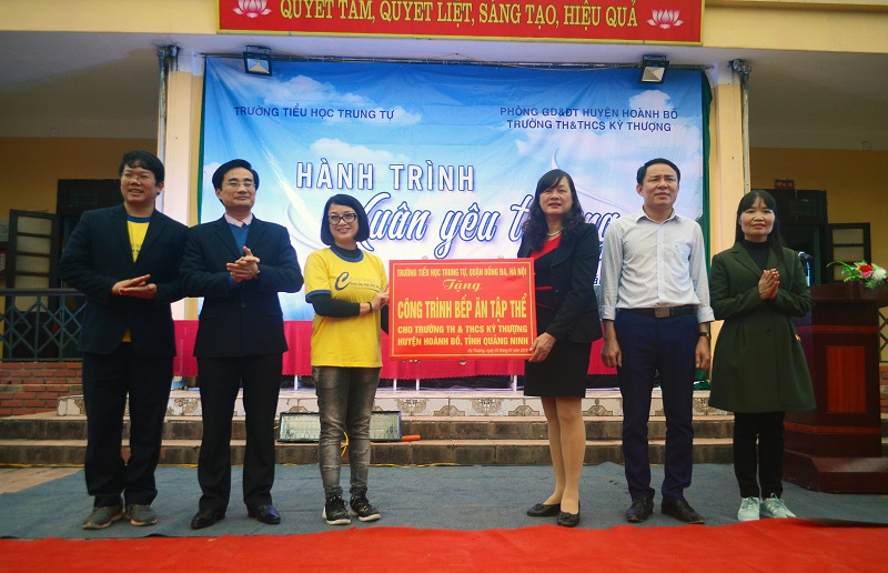 Với tấm lòng chia sẻ yêu thương, chiều ngày 5/1/2019, tập thể cán bộ, giáo viên và hội cha mẹ phụ huynh trường Trung Tự cùng các ca sĩ Sao Mai tổ chức chương trình trao bếp ăn, quà cho thầy trò trường Kỳ Thượng và giao lưu văn nghệ với các thấy cô giáo huyện Hoành Bồ tại điểm trường của Trường Tiểu học và Trung học cơ sở Kỳ Thượng. Cùng trao quà tại buổi lễ có Ông Nguyễn Anh Tú – Tỉnh ủy viên - Bí thư huyện ủy Huyện Hoành Bồ cùng toàn thể các thầy cô giáo Phòng GD&ĐT huyện.