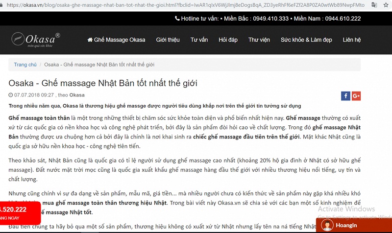 Cụ thể, trên website okasa.vn xuất hiện những dòng quảng cáo sử dụng từ: "nhất” cho dòng sản phẩm ghế massage Okasa.