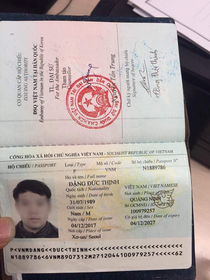 Hộ chiếu của đối tượng Đặng Đức Thịnh.